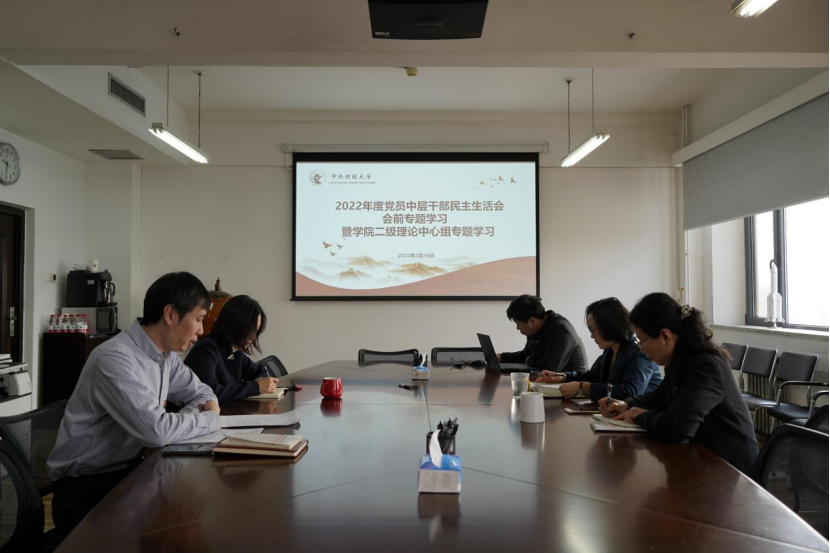 2023年2月16日,kaiyun登录中国入口登录党委在1407会议室召开2022年度党员中层干部民主生活会会前专题学习暨理论中心组专题学习。会议由学院党委书记于鹏主持,院长姜玲、副院长李宇环、组织员张小燕参加学习。