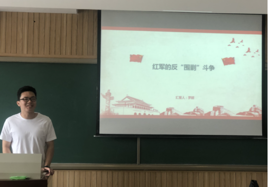 罗超同志分享了红军反“围剿”斗争的历史背景和意义。在中国共产党的领导下,红军经过三年艰苦曲折的游击战争,粉碎了国民党反动派的多次“进剿”与“会剿”。罗超同志运用简洁明了的关系图向我们展示了五次反“围剿”斗争的时间经典战役战术前线将领和意义等重要信息。红军在反围剿斗争中战略战术思想建立在人民战争的基础之上,解决了红军以劣势兵力和落后装备战胜强大敌人的问题,这是对马克思主义军事学说的杰出贡献。